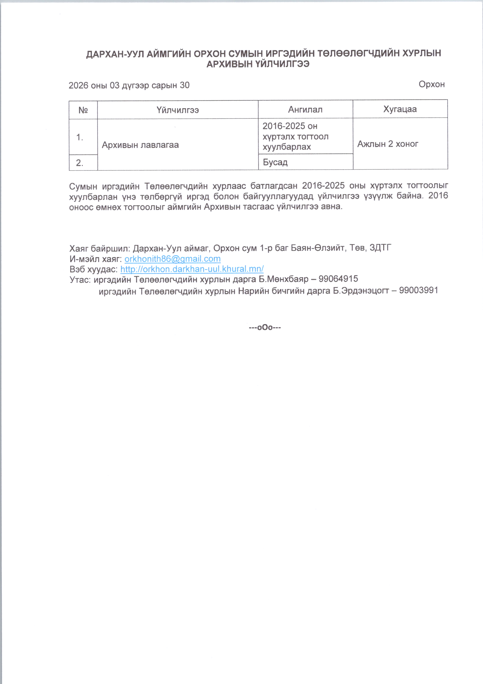 Дархан-Уул аймгийн Орхон сумын ИТХ-ын цахим хуудас